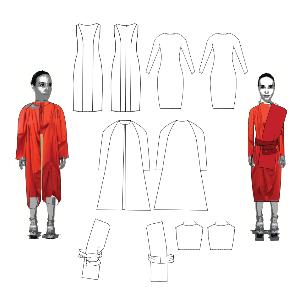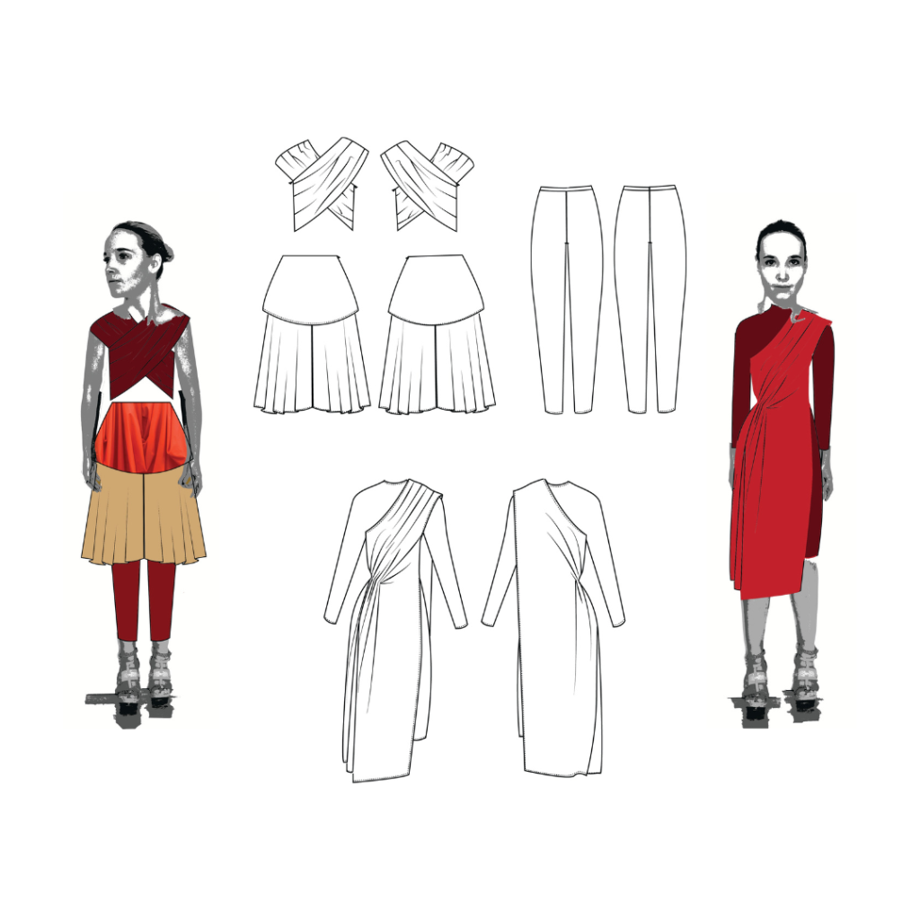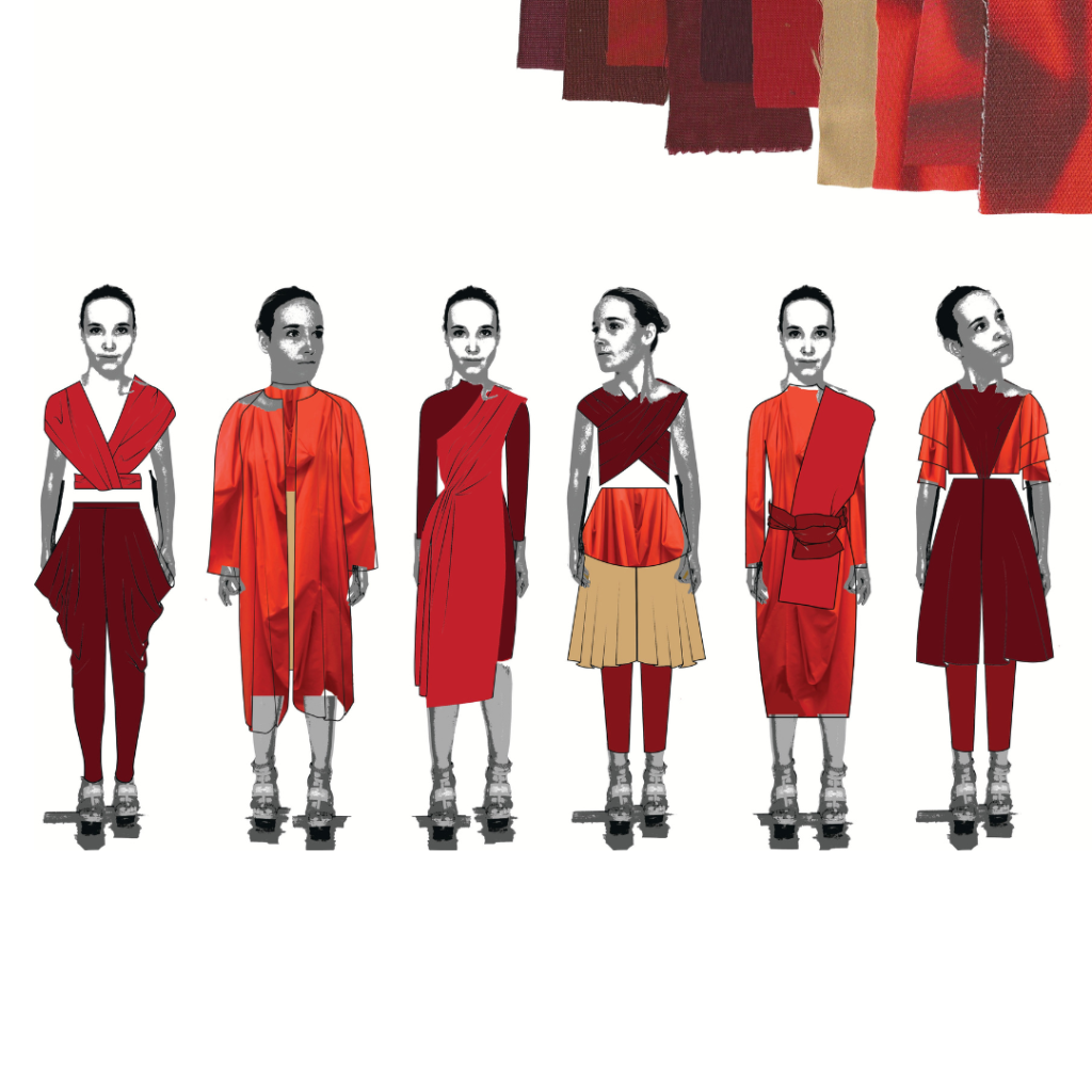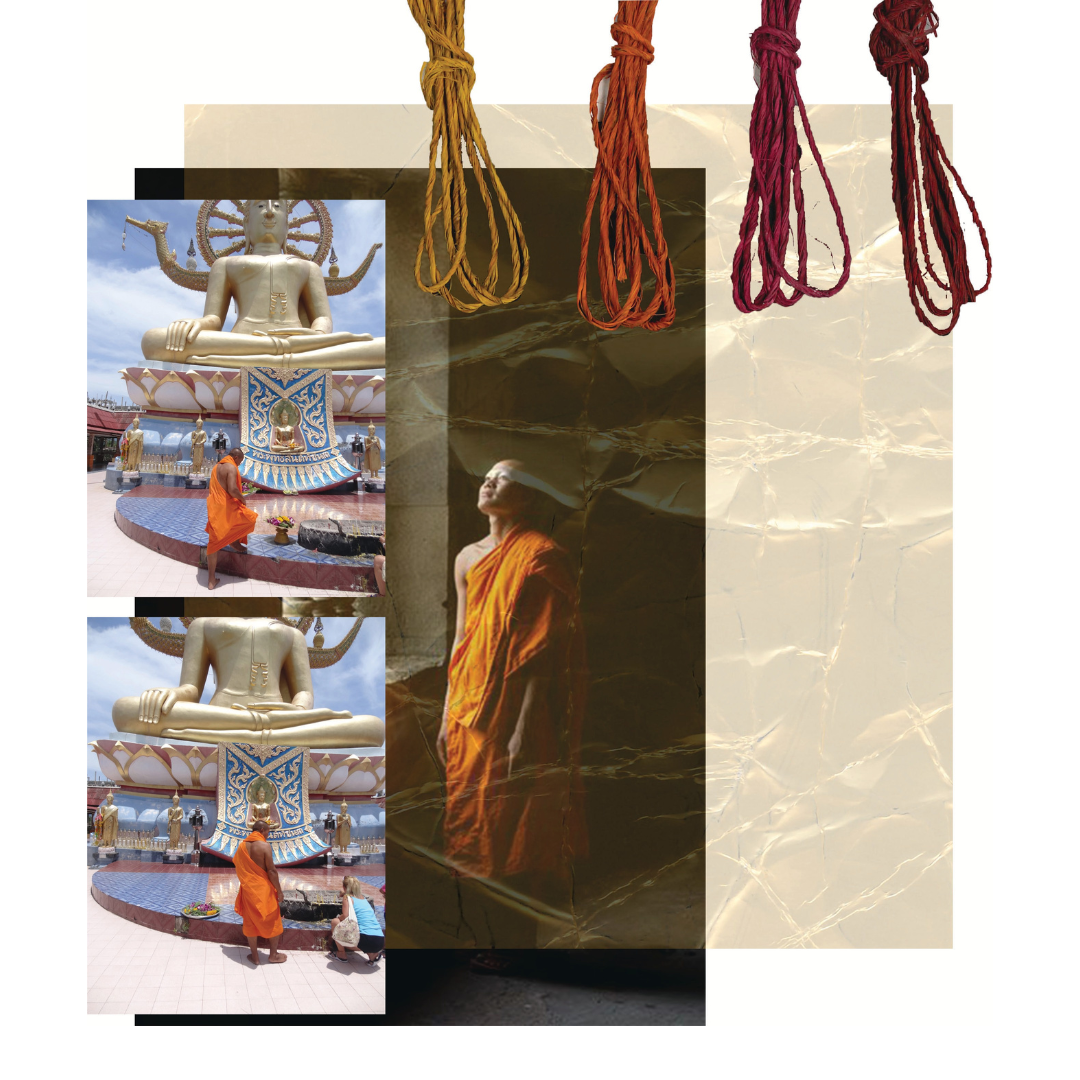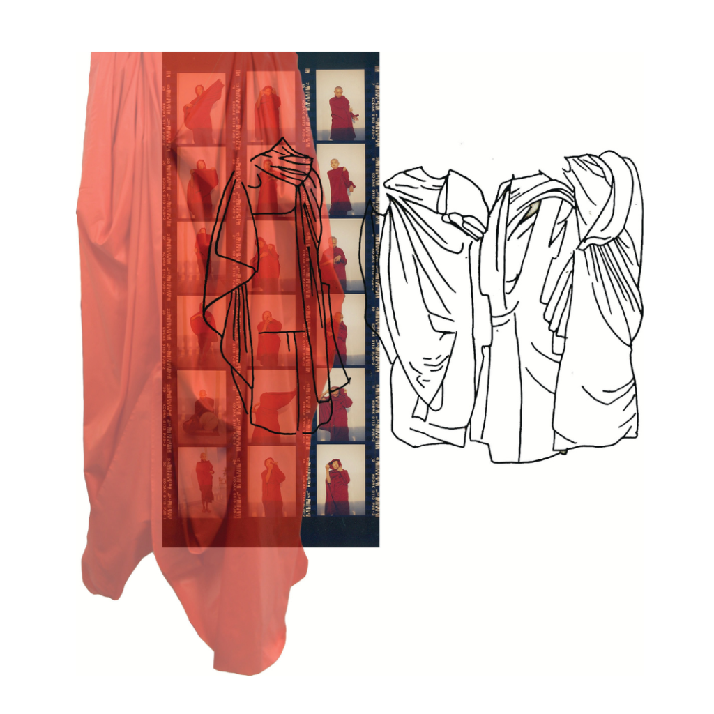 All hand made by me. This collection is inspired by Buddhism. Looking into their religion and the photos of my memories I am particularly fascinated with their robes. It’s interesting that so many people can wear the same ‘uniform’ but all look so different and unique. Their robes are the only things they have control over, as it’s the only clothing they are permitted to wear. This lead me to designing a collection exploring the versatility of drape and how it can be worn.