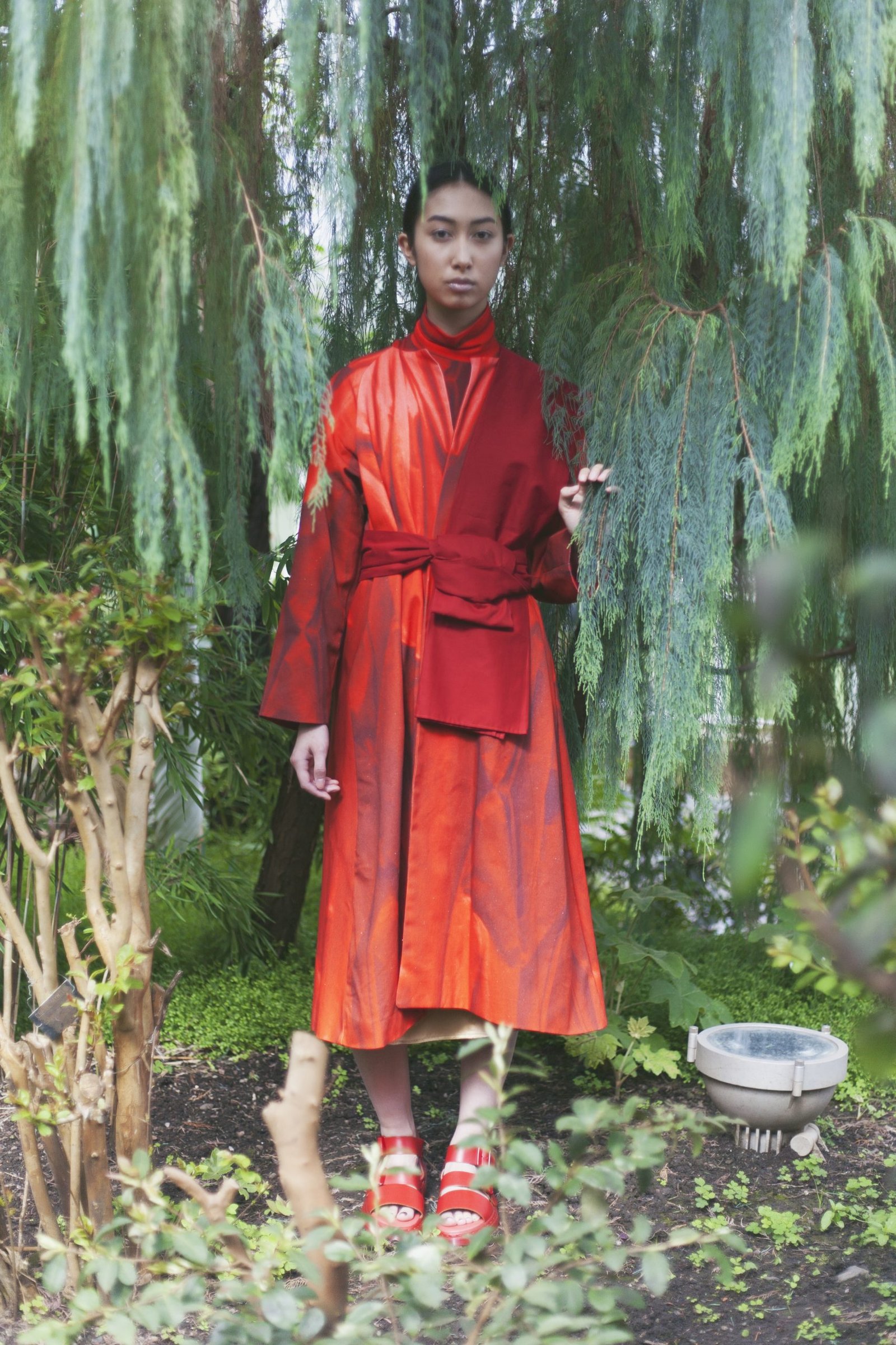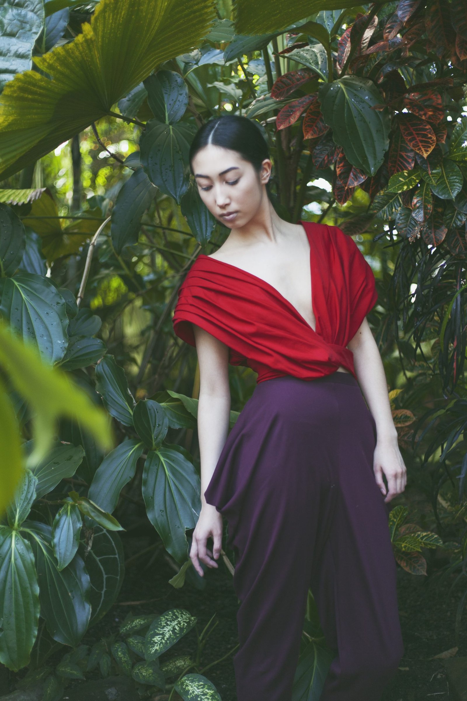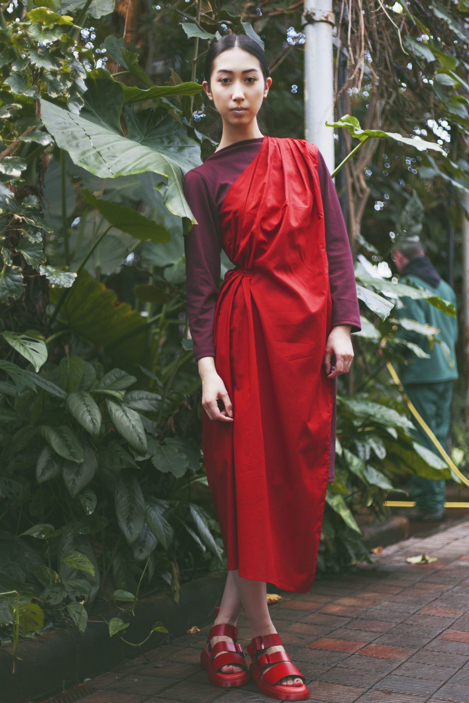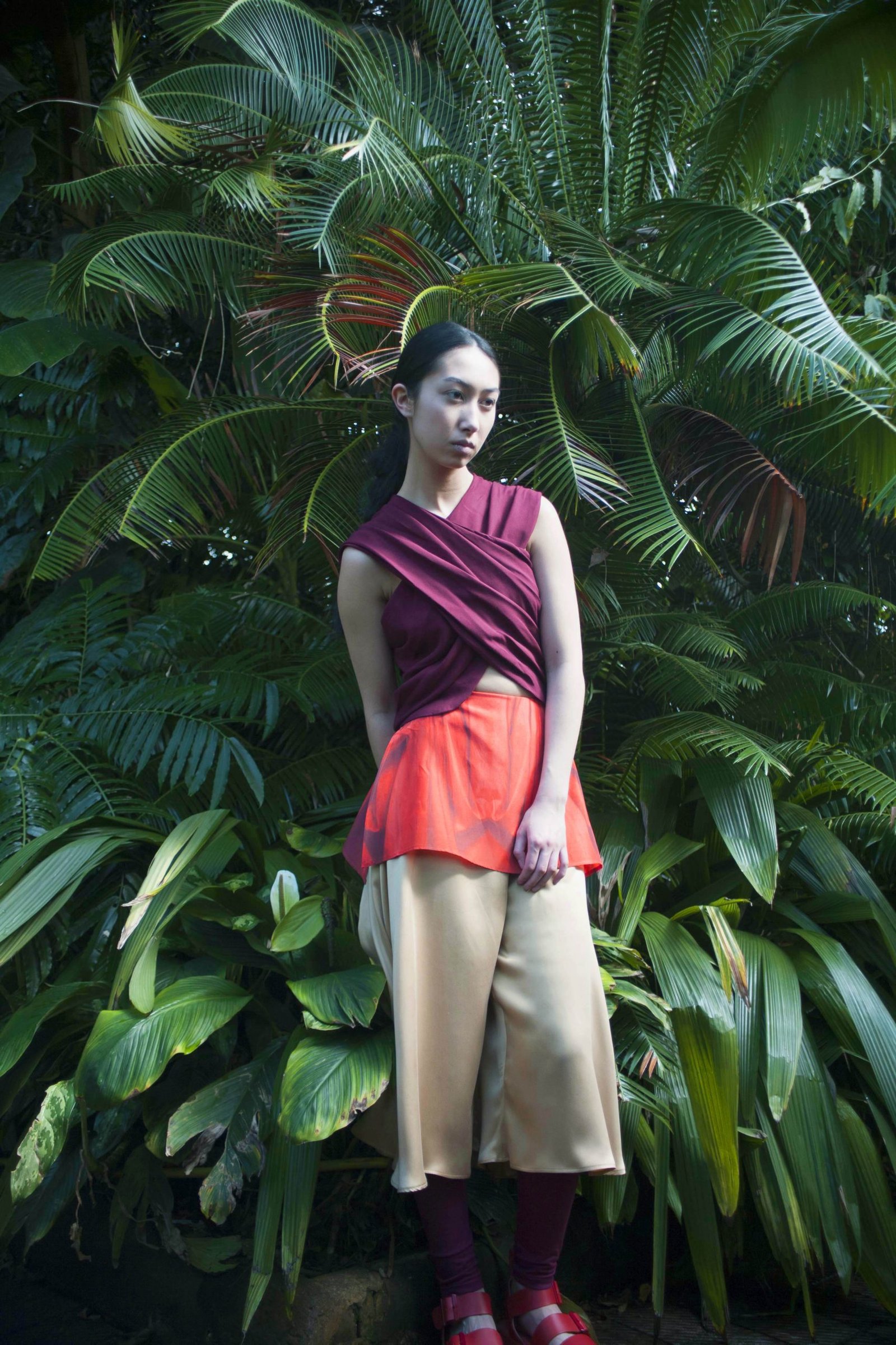 All hand made by me. This collection is inspired by Buddhism. Looking into their religion and the photos of my memories I am particularly fascinated with their robes. It’s interesting that so many people can wear the same ‘uniform’ but all look so different and unique. Their robes are the only things they have control over, as it’s the only clothing they are permitted to wear. This lead me to designing a collection exploring the versatility of drape and how it can be worn.